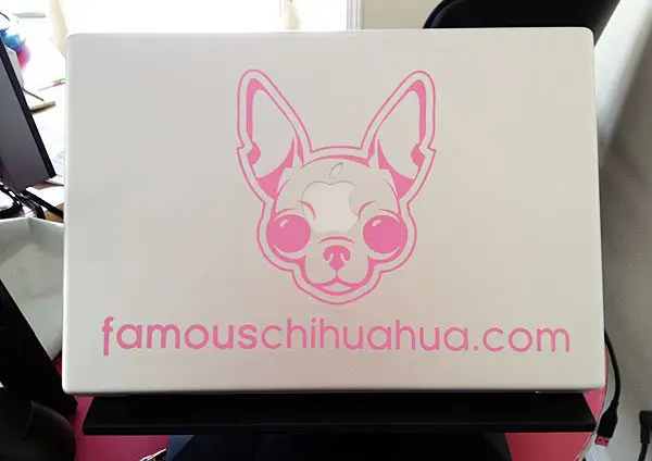 a famous chihuahua® decal that goes on your car window or lap top like you see below!